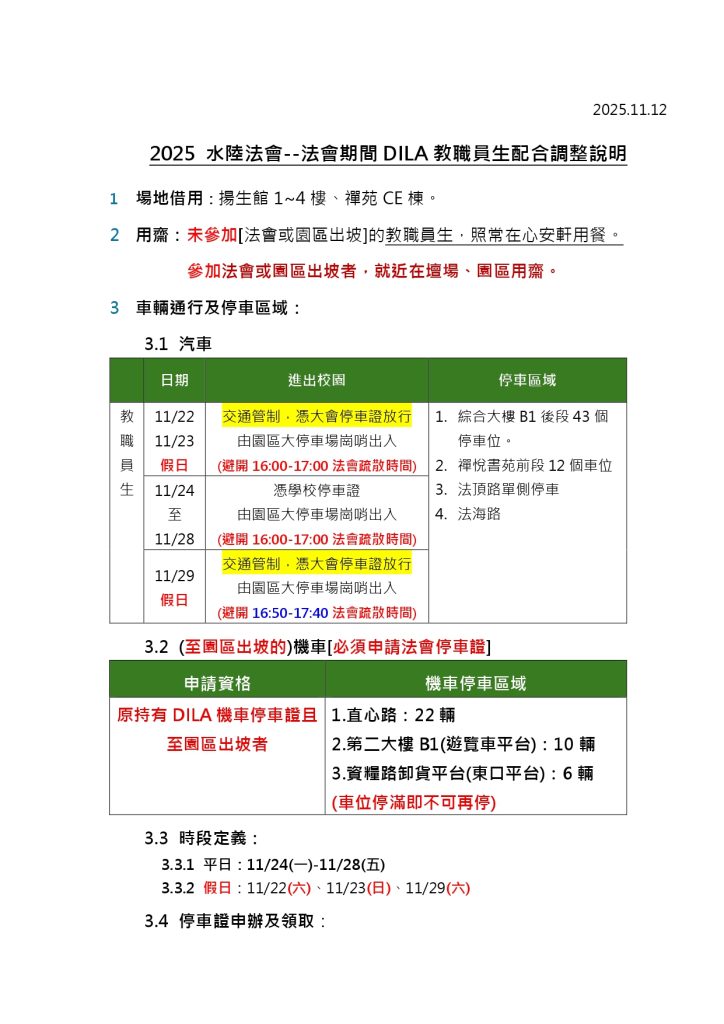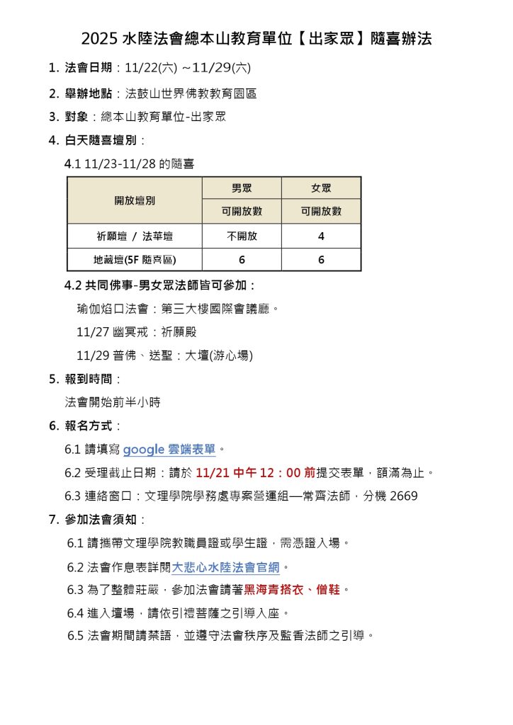2025 大悲心水陸法會作息總表